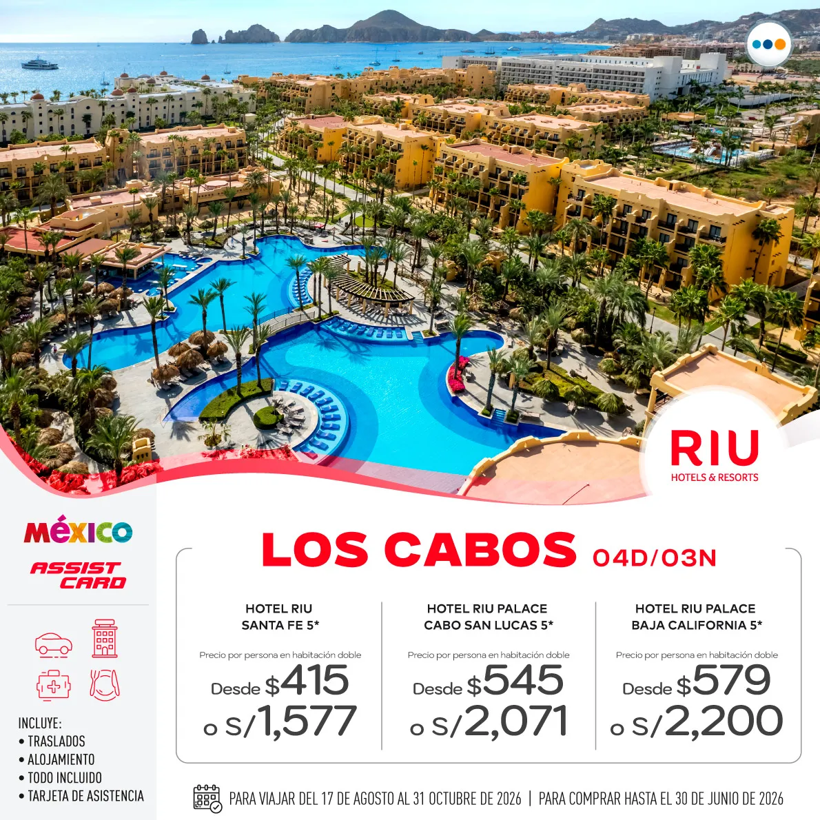 • Tarjeta de Asistencia Assist Card, hasta los 85 años (cobertura US$ 60K).